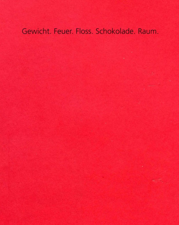 Feuer. Floss. Schokolade. Raum.