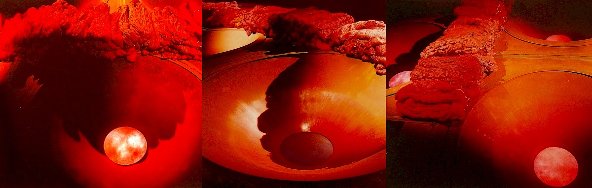 Fez Fez hat dieses Stadium hinter sich gelassen und präsentiert sich in rohen, rostigen Eisenquadern, die über Treppen bestiegen werden können und in die große Schalen eingelassen sind, auf deren Grund jeweils ein Monitor rote Flüssigkeit suggeriert. Zwischen zwei Reihen dieser Blöcke türmt sich über sechzehn Meter Länge rot gefärbte Wolle. Eisen, Wolle und Video sind die materiellen Extreme dieser marokkansichen Vision. Fez Fez verbindet schweres Metall mit Flüssigkeit, virtuelle Farbe mit der realen gefärbten Wolle und einer Soundinstallation, integriert Bewegung in die statische Plastik und versöhnt die Elemente mit der Technologie im Stil einer illusionistischen Bühnenmaschinerie.